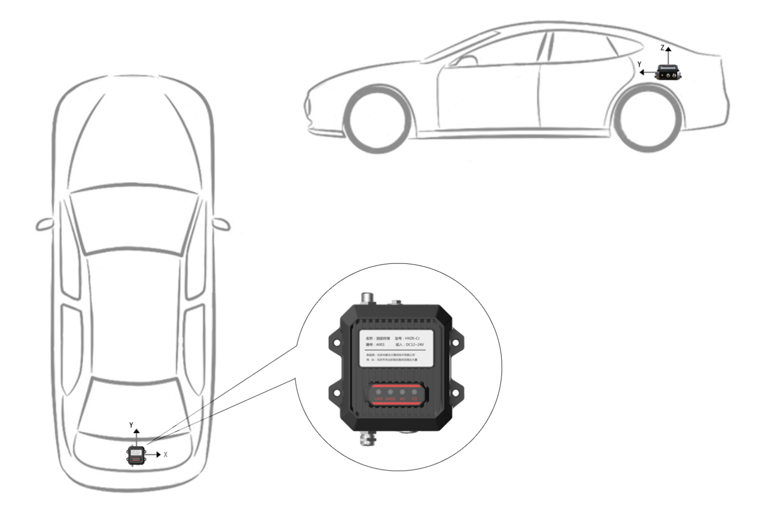 - 整机 Y 轴指向载体前进方向,X 轴垂直于载体前进方向朝右,Z 轴朝上;