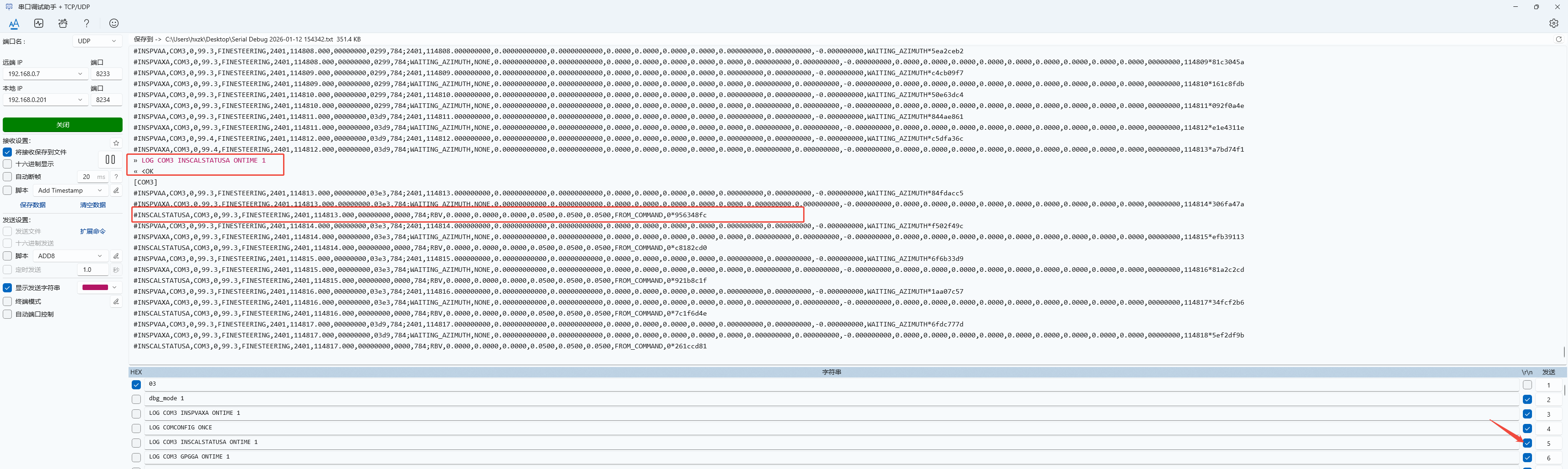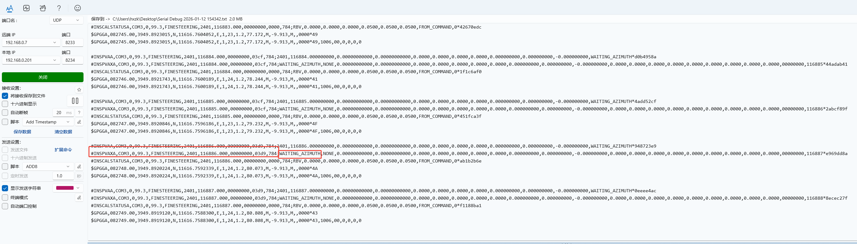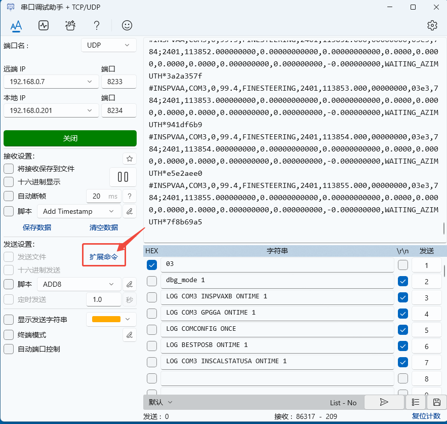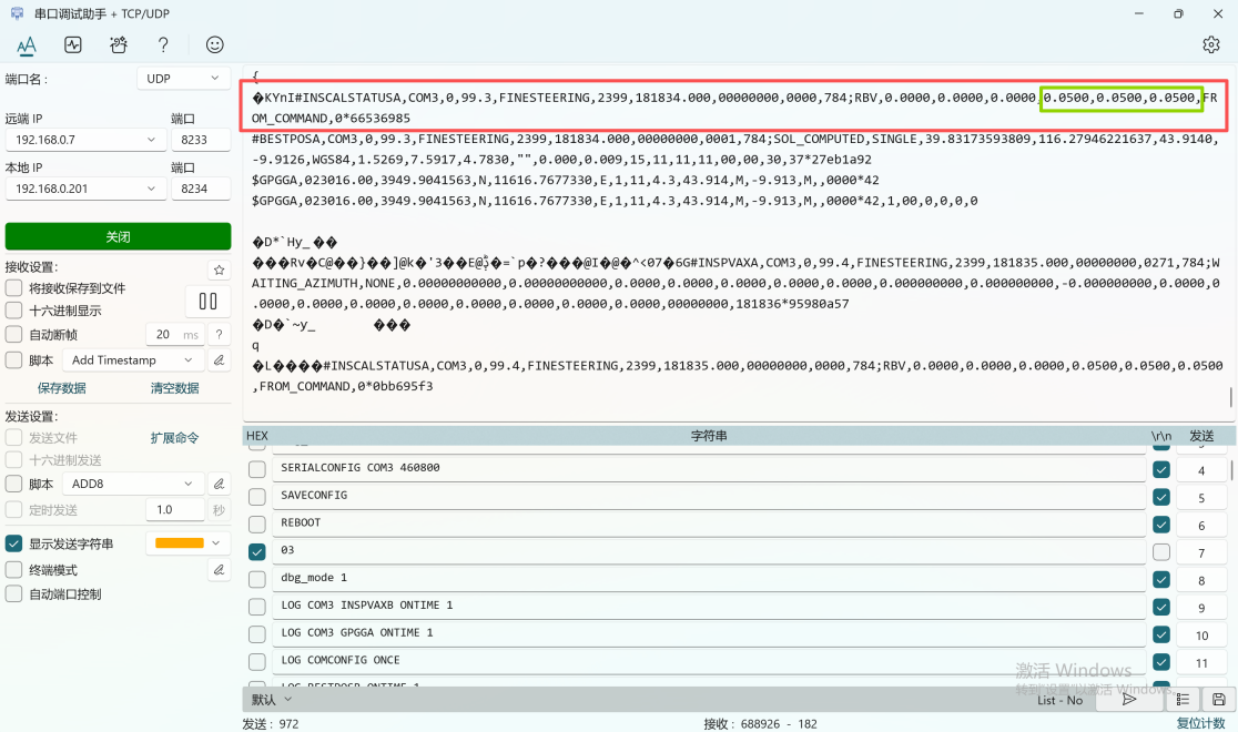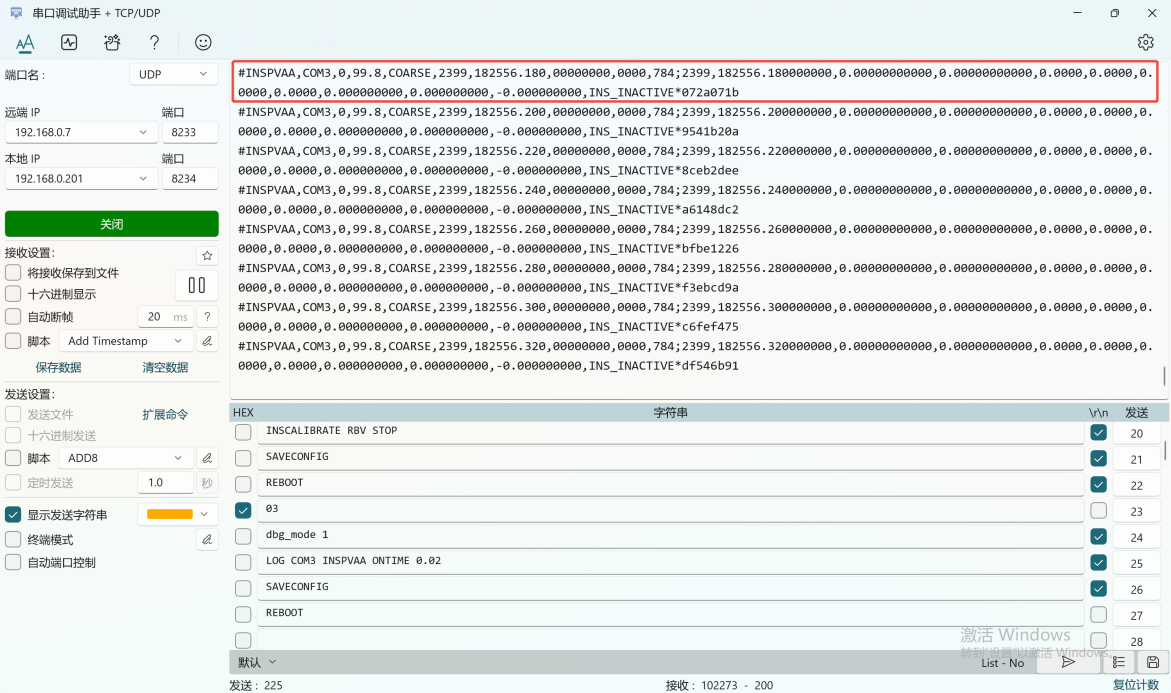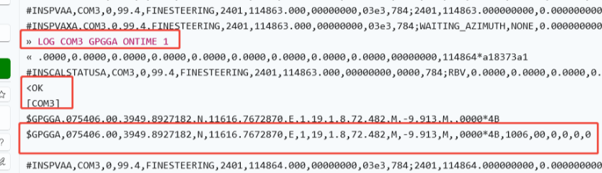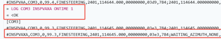 3.发送LOG COM3 INSPVAXA ONTIME 1指令,如下图所示