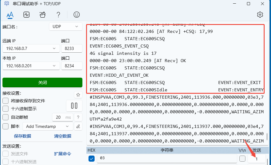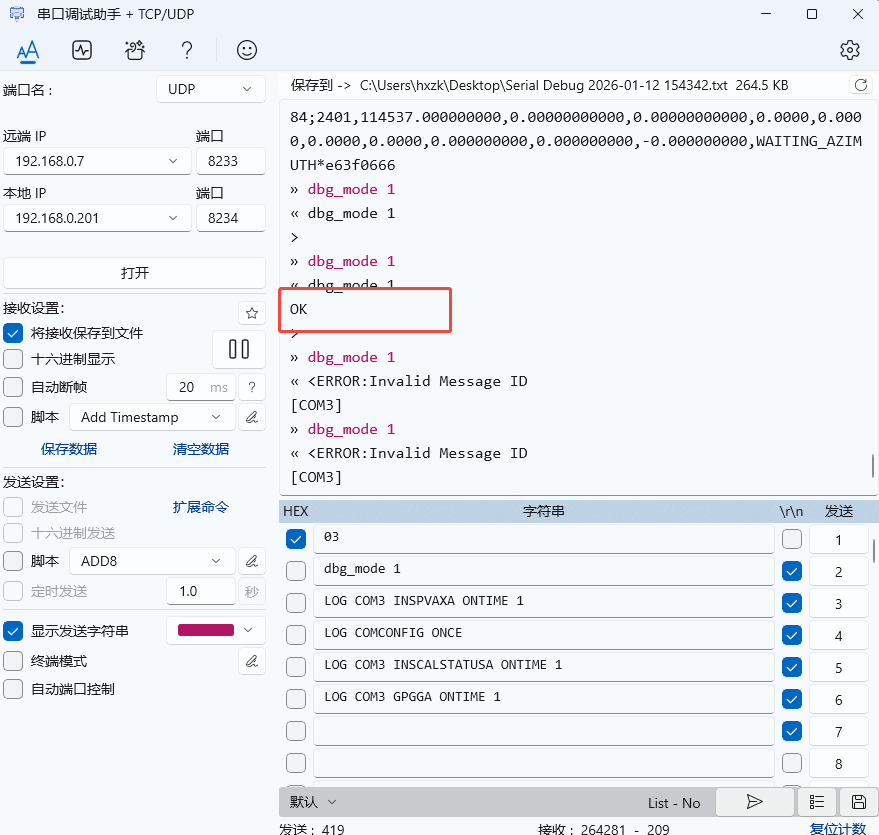 2.点击发送dbg_mode 1注意要勾选\r\n回车换行,发送不成功多点击发送几次。