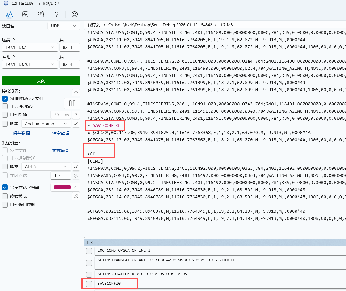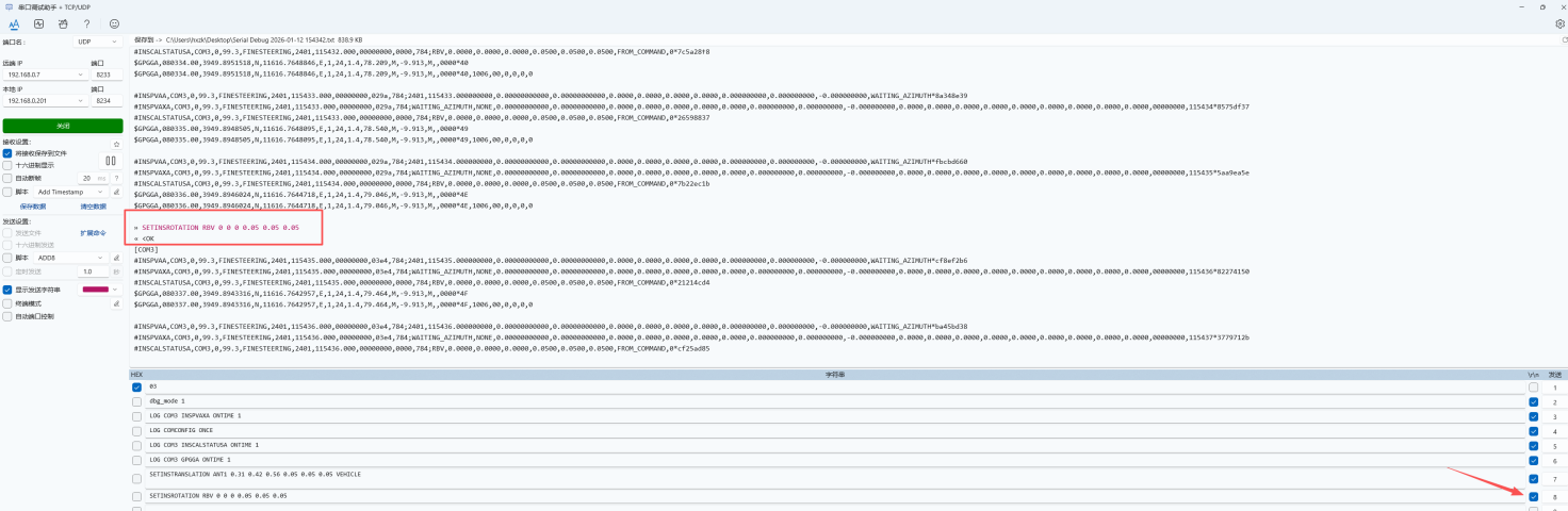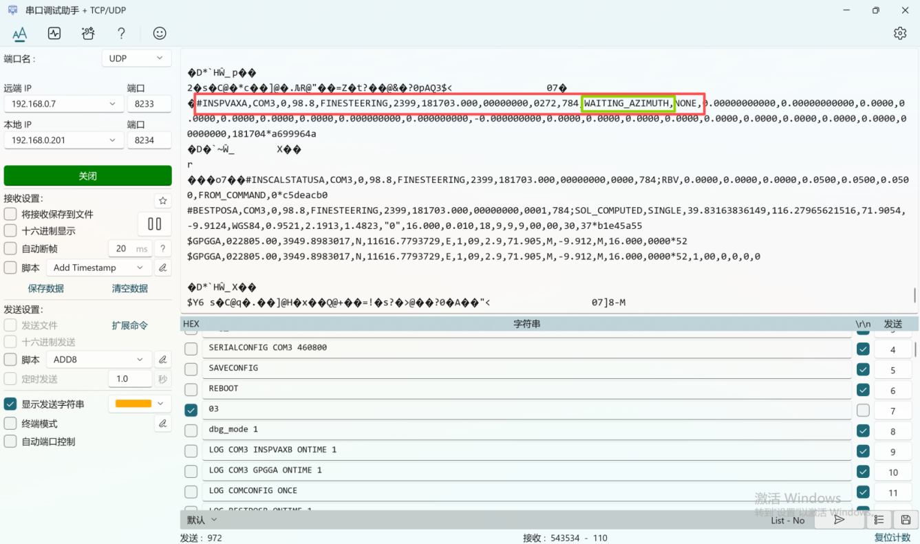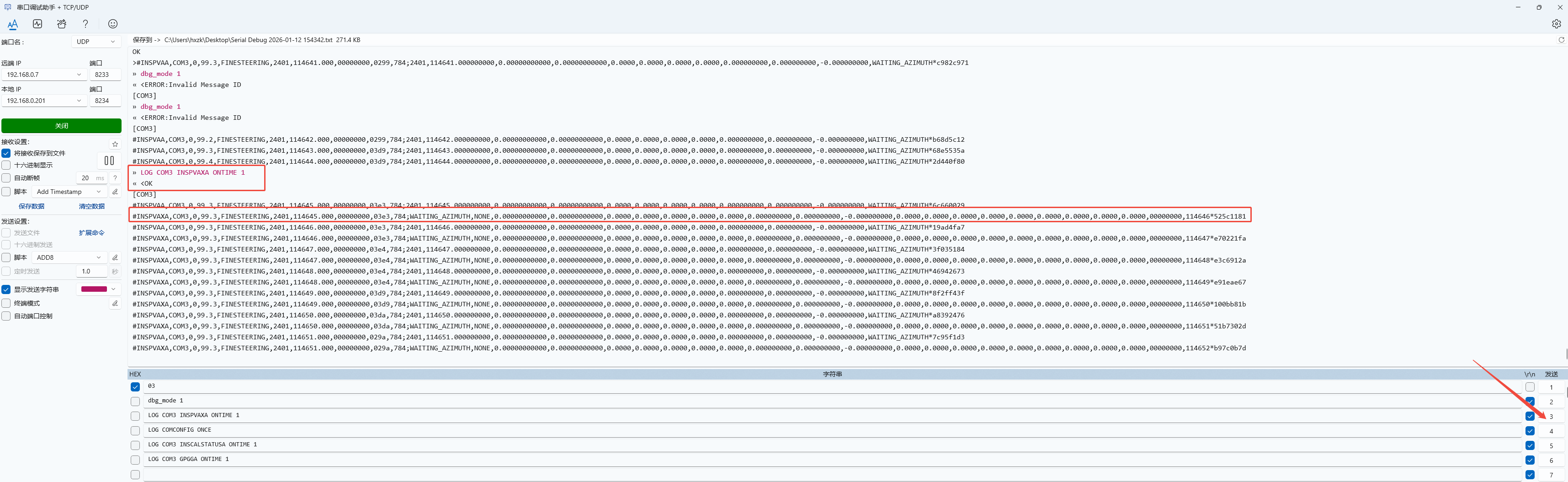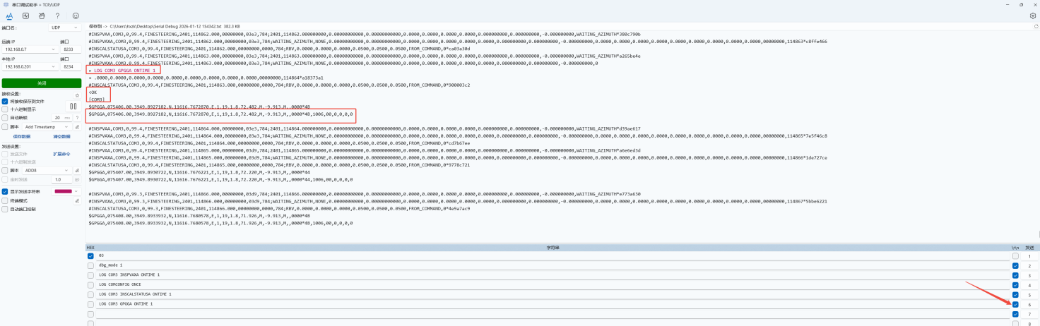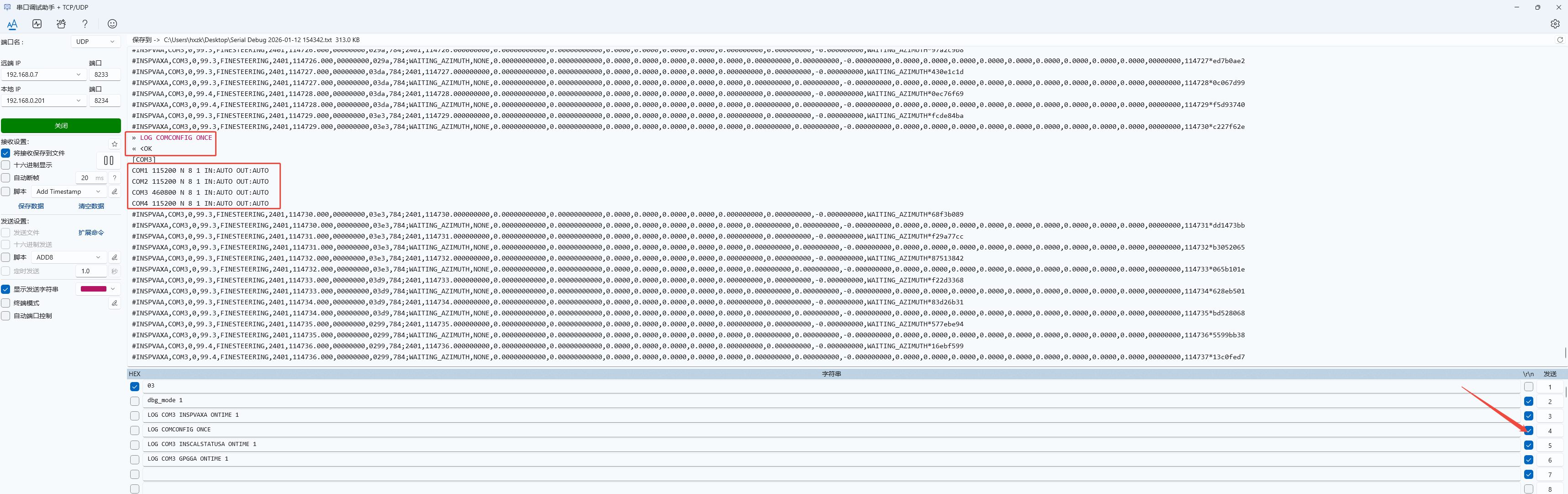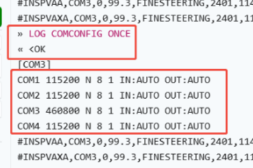 4.发送LOG COMCONFIG ONCE指令,如下图所示