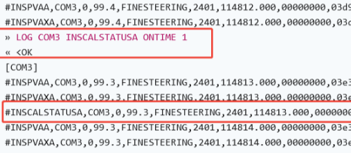 5.发送LOG COM3 INSCALSTATUSA ONTIME 1
