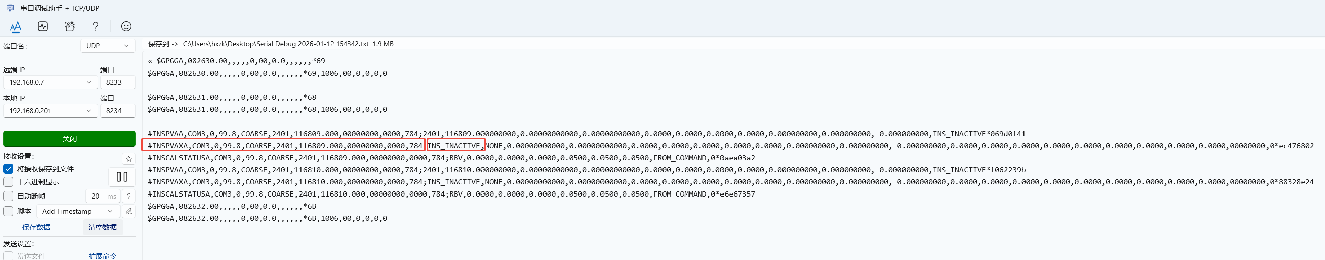 【LOG COM3 INSPVAA ONTIME 0.02】(asill输出50Hz)