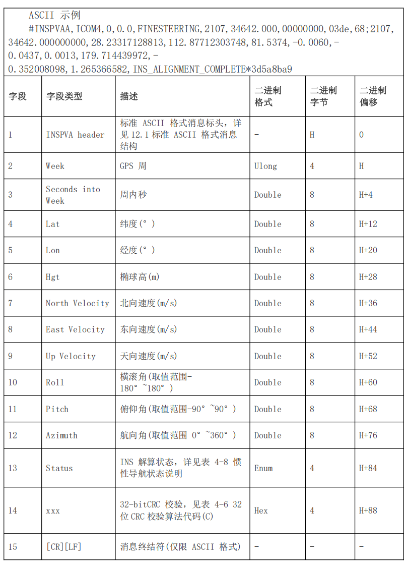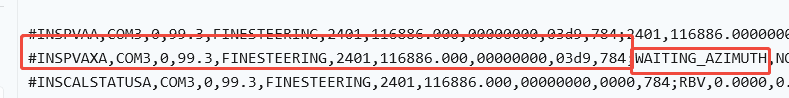 组合导航系统通过获取位置、速度和姿态估计值来完成系统初始化的过程被称为系统对准。每次设备上电,系统内部都将按以下流程进行对准:看INSPVAXA数据中的字段。